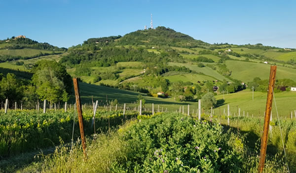 今から2千年前、古代ローマの執政官マルコ・エミリオ・レピドによって建設されたエミリア街道は、ロマーニャ地方を2つの地域に分断しています。一方はアペニン山脈が徐々に上昇する地域、もう一方は長い平野が続く地域です。平野はリミニに近づくにつれて狭くなり、ヴェネツィアの繁栄を支えたアドリア海へと続いていきます。この風景の中で、ベルティノーロはアペニン山脈の始まりを告げる最前線に堂々とそびえ立ち、海風を受けて青いアドリア海を望みます。